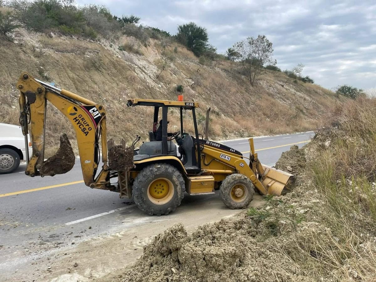 El Gobierno Municipal de Soto La Marina llevó a cabo la limpieza y remoción de un talud que obstruía parcialmente la calzada a la altura del basurero municipal, asegurando el libre tránsito en la zona.